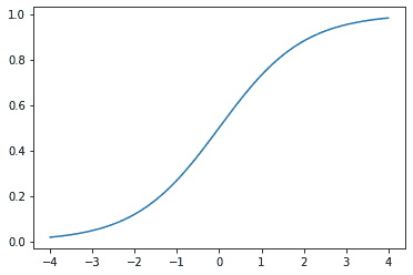 1 | plot_function(torch.sigmoid, min=-4,max=4) |