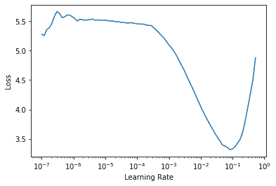 1 | print(f"Minimum/10: {lr_min:.2e}, steepest point: {lr_steep:.2e}") |